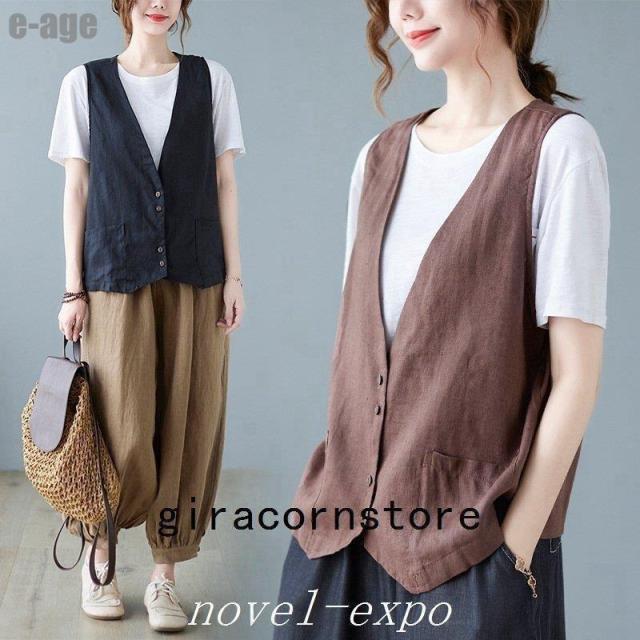 ゆったり レディース ベストサマーベスト ジレ 春夏 ショート レディース リネンベストレディースベスト夏ベスト薄手前開きトップスゆったり 麻ベスト
