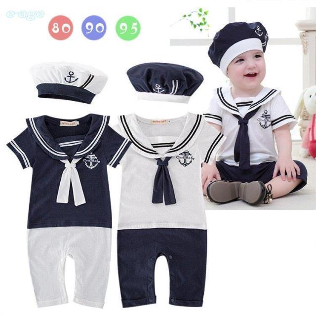 ベビー 服 半袖 男の子 女の子 ロンパース カバーオール ベビー 赤ちゃん服 水兵さん マリンルック 帽子付き セット 襟付き セーラー服 かわいい 出産祝い