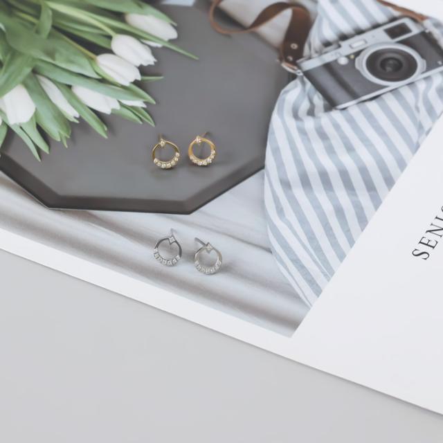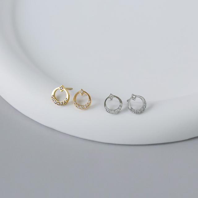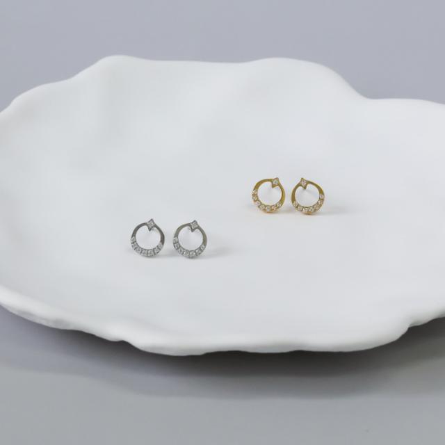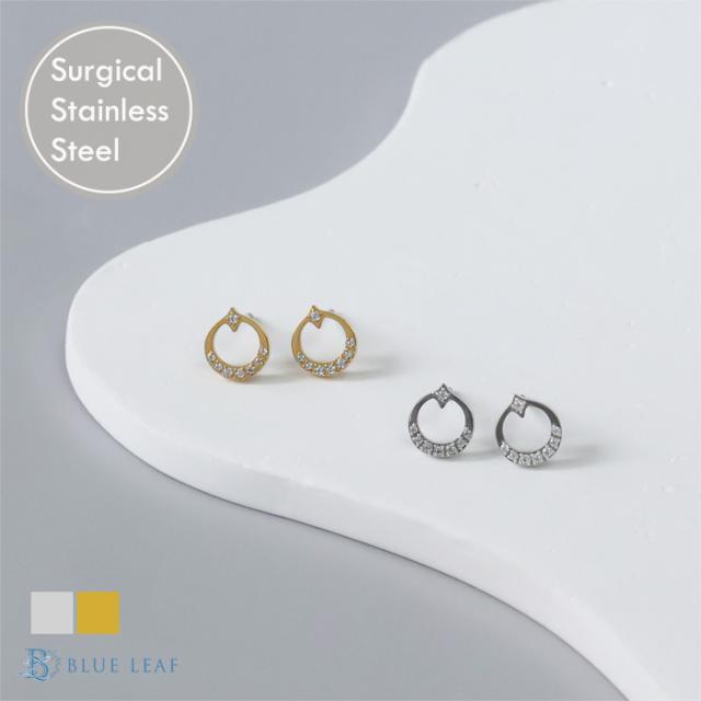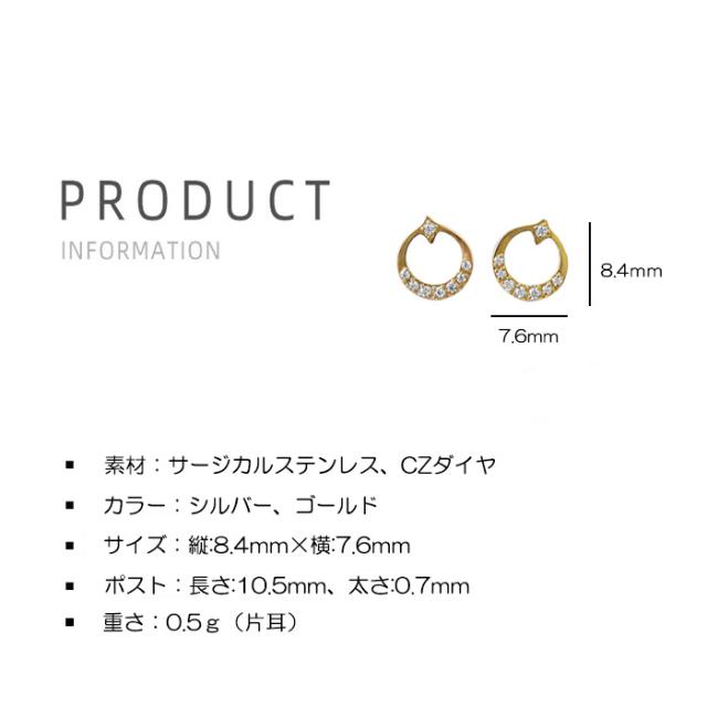 ピアス 丸 サークル CZダイヤ サージカルステンレス つけっぱなし 低アレルギー 小ぶり シルバー ゴールド アクセサリー ジュエリー 小さめ シンプル 大人可愛い