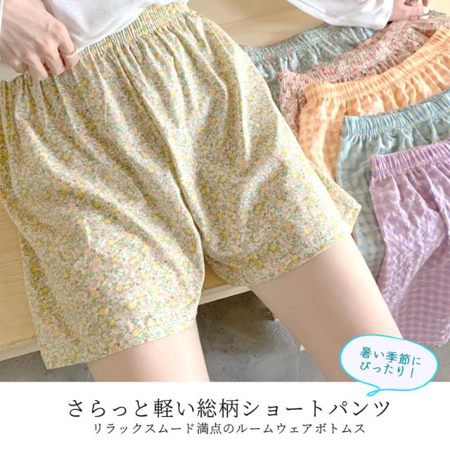【パジャマ レディース 夏用 短パン ショートパンツ ルームウェア ナイトウェア 夏 湯上がり 部屋着 軽い 涼しい 涼し気 さらさら 花柄 チェック 可愛い おしゃれ ネグリジェ 快適 女の子 お泊り 修学旅行 お泊り会 旅行】