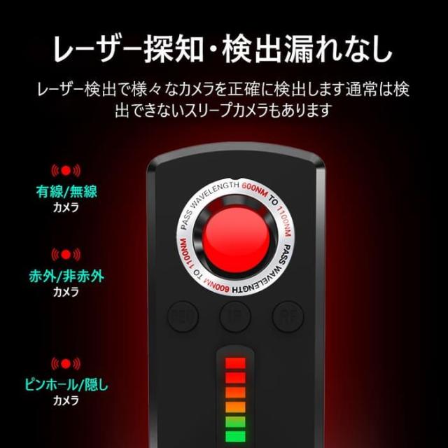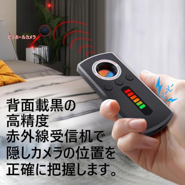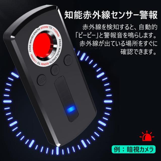 背面載黒の高精度赤外線受信机で、赤外線を検知すると、自動的「ピーピー」と警報音を鳴らします。赤外線が出ている場所をすぐに確認できます。