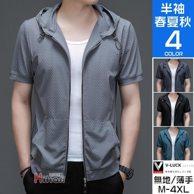 半袖パーカー メンズ ジップアップパーカー 羽織 冷感 無地 薄手 フード付き 半袖 プルパーカー スポーツ トップス 夏服