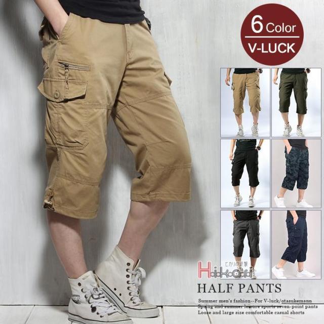 7分丈パンツ メンズ カーゴパンツ カプリパンツ クロップドパンツ ハーフパンツ スポーツ 膝下 大きい 夏 綿100%