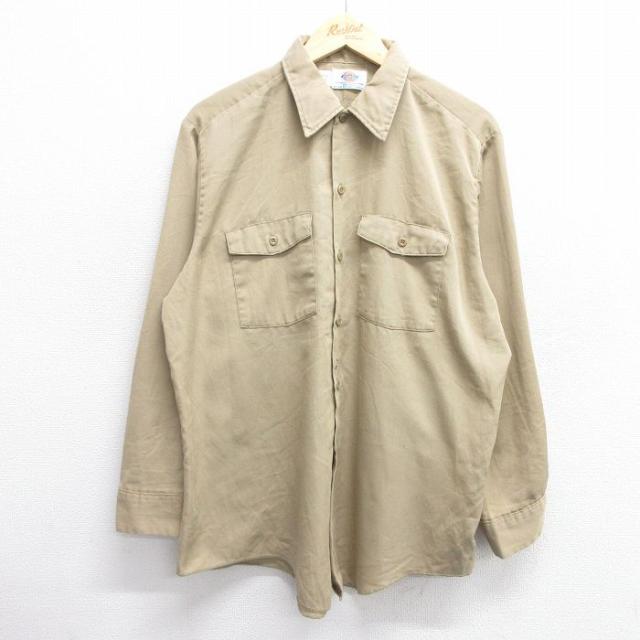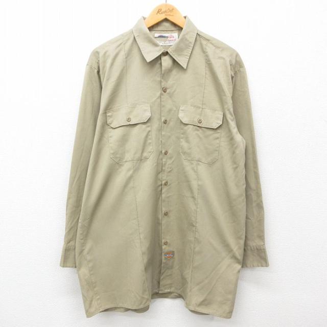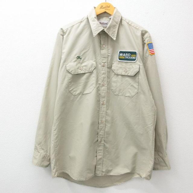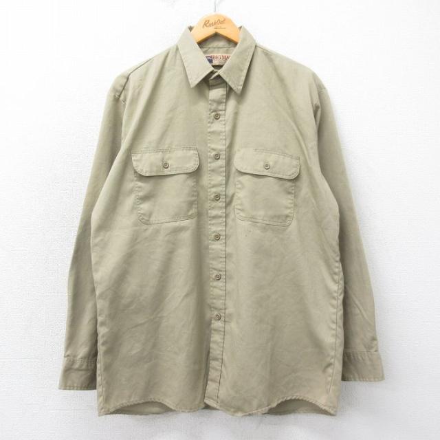 古着 長袖 ワーク シャツ メンズ ベージュ カーキ XLサイズ 中古 トップス 中古 古着