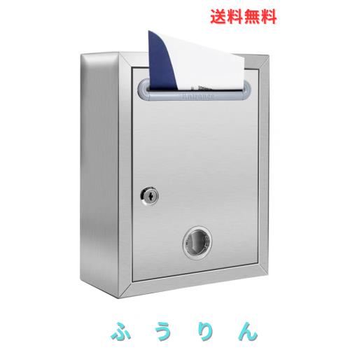 合計測定値:270mm*210mm*110mm、入口サイズ:7mm*134mm 丈夫で耐久性に優れたロック付きステンレス製ポスト。 鍵(ロック)付きなので安心・安全です。 背面に壁掛け用の穴が開いているほか、付属のネジやアンカーを使用して壁に取り付けることもできます。 材質はステンレス製で錆びにくく、傷つきにくいです。 耐久性があり丈夫なので、長くお使いいただけます。