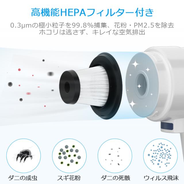 掃除機 コードレス ハンディ 新生活 15000pa 強力吸引 軽量 5種類ノズル usb充電式 上下70°/左右90°調整 HEPAフィルター
