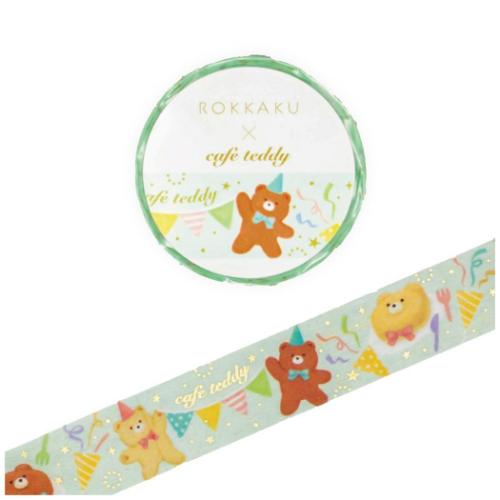 ROKKAKU x cafe teddy マスキングテープ 15mm マステ パーティ 手帳デコ デコレーション グッズ メール便可