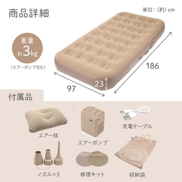 送料無料 三太郎の日 冬新作 エアーベッド 電動 エアーマット シングル エアベッド エアマット 車中泊 マット キャンプ エアーマットレス 電動エアーベッド 簡易ベッド 耐荷重150kg