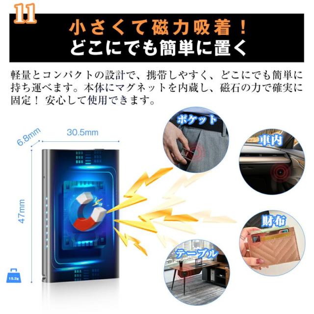 【マグネット付きでどこでも活用!】マグネット付きのデザインにより、多様な場所に簡単に取り付けられます。例えば、会議室のホワイトボードや冷蔵庫、金属製の家具などあらゆる場所に固定できます。持ち運びも便利で、録音したいシーンに応じて柔軟に活用できます。