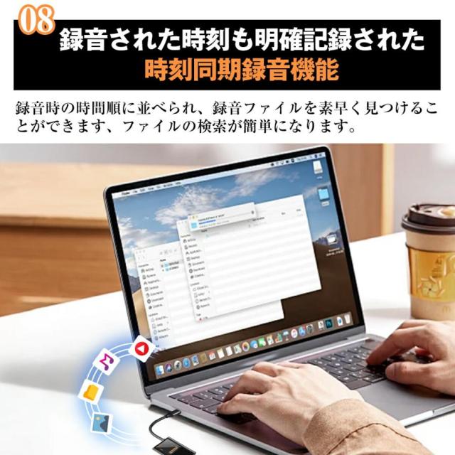 【 時刻同期設定でデータ検索も簡単!】時刻同期設定機能を搭載しているため、録音データを簡単に時系列で検索できます。録音ファイルにタイムスタンプが付けられるため、後でデータを確認する際にも非常に便利です。会議や重要なインタビューの記録を時系列で整理でき、必要な情報を迅速に見つけ出せるので、効率も向上します。