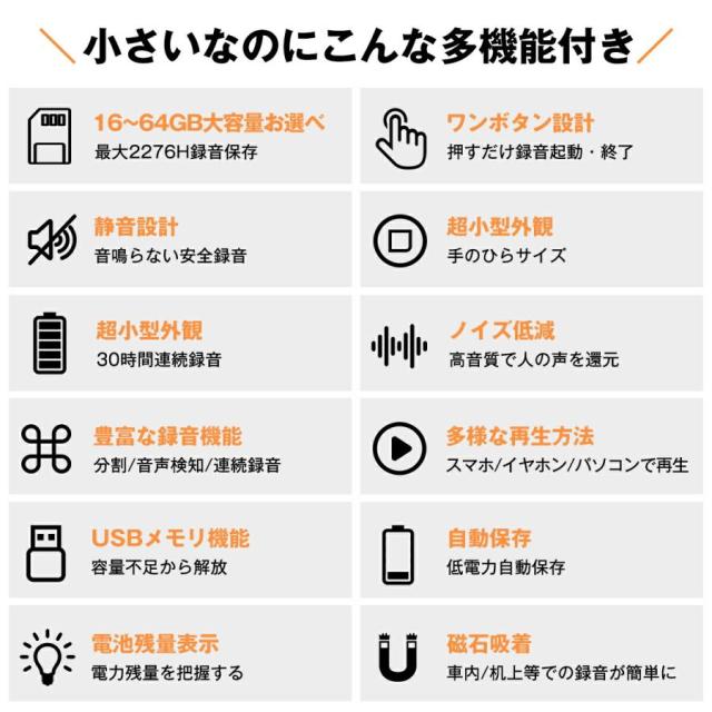 16GB::最大1138時間録音データ保存