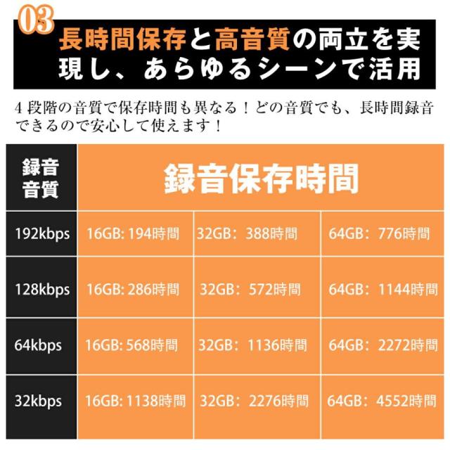 64GB::最大4552時間録音データ保存