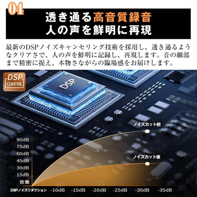 【高性能チップで高音質録音!】高性能チップを搭載しているため、高音質な音声を収録することができます。会議やインタビュー、講演など、重要なシーンでの録音にも活用です。微細な音もクリアに再生できるため、後で聞き返す際にも内容が明瞭です。高品質な音声データを確保することで、重要な情報を逃すことなく記録できます。