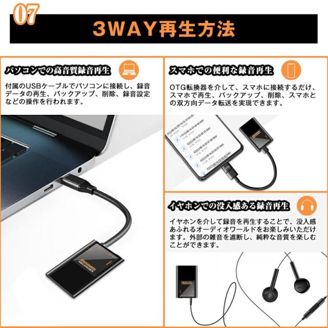 【OTG対応でデータ移行も簡単!】OTG対応しており、iPhoneやアンドロイドデバイスに簡単にデータ移行が可能です。アプリを介さず、直接データをスマートフォンに送ることができるため、便利かつスムーズに録音データを共有できます。多忙なビジネスマンや研究者にとって、重要な録音データを迅速に移行・確認できる機能は大変ありがたいです。