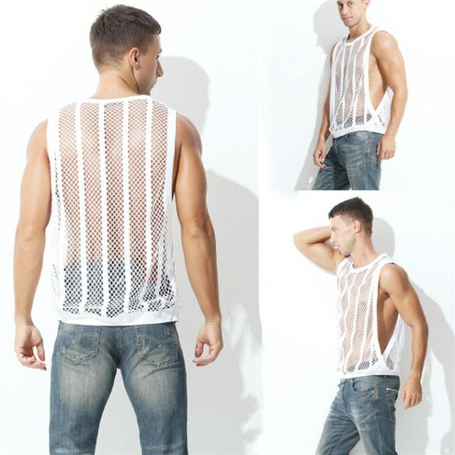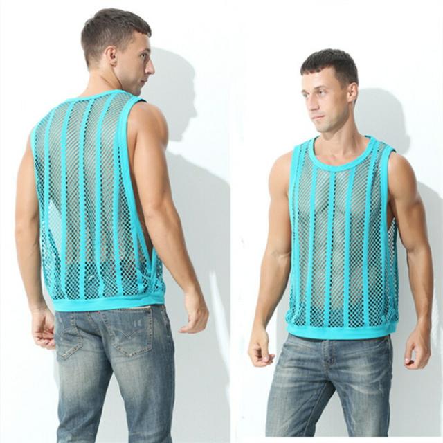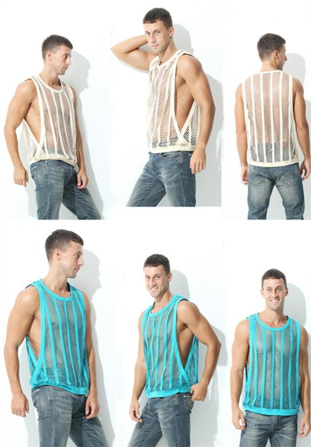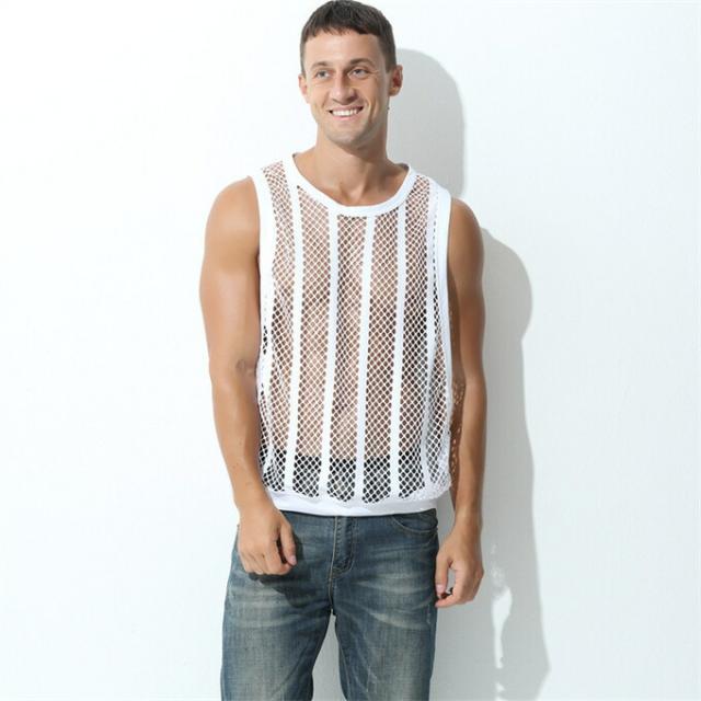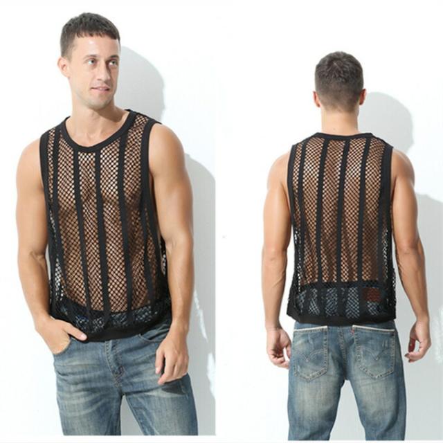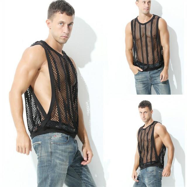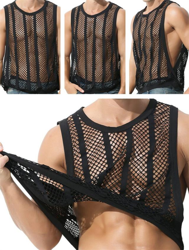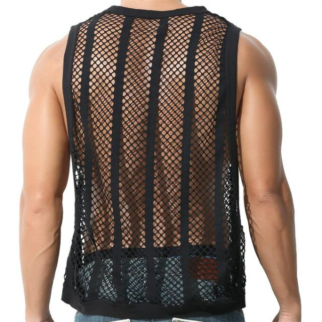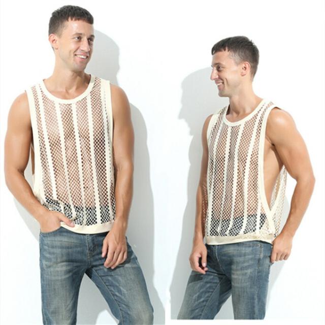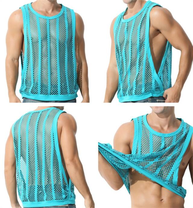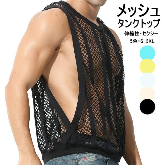 タンクトップ メンズ 透かし編み 袖なし ノースリーブ メッシュ セクシー ストライプ ショート丈 ゆったり 涼しい 透け感 大きいサイズ 伸縮性 ストリート おしゃれ カジュアル アメカ かっこいい