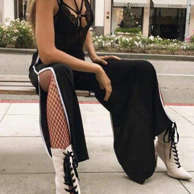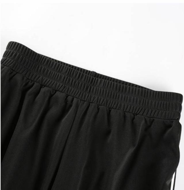 訳あり 送料込み ワイドパンツ ハイスリット 黒 ロング サイドライン ダンス ストリートカジュアル スポーツミックス