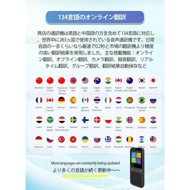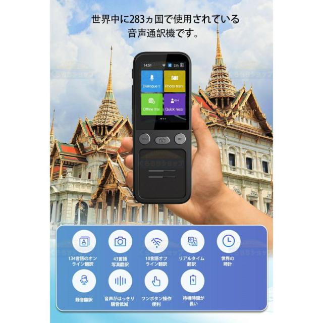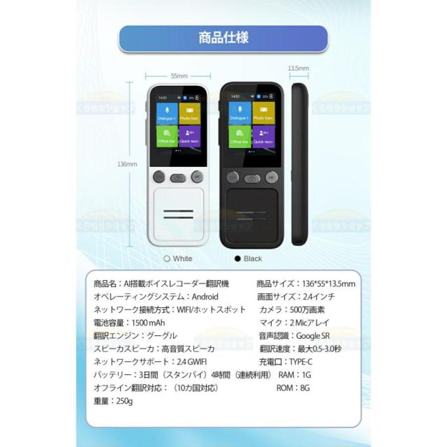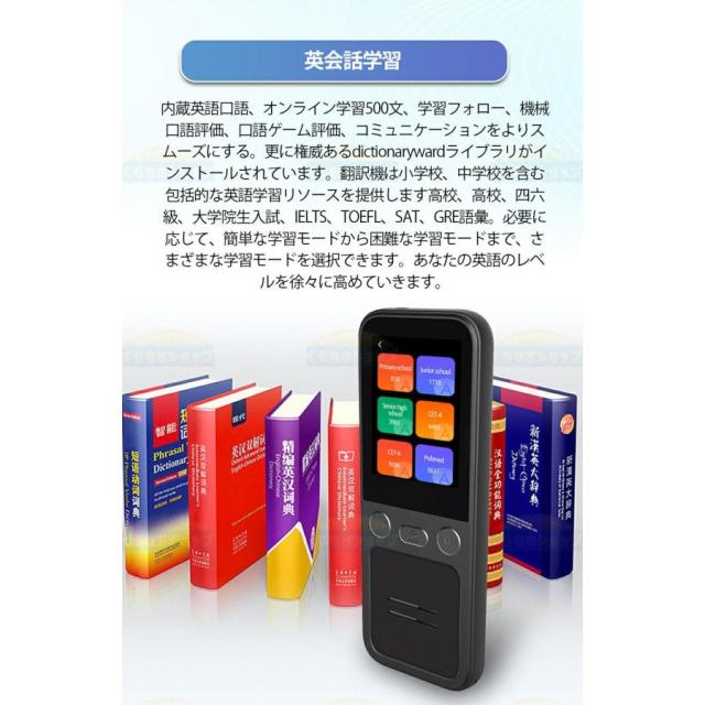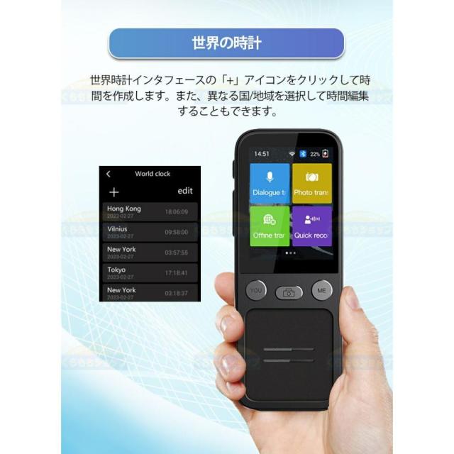 主な搭載機能:HD文字認識カメラ(42言語対応)、英会話レッスン、デュアル海外時計、Wifi&Hotspot接続機能、タッチスクリーン機能
