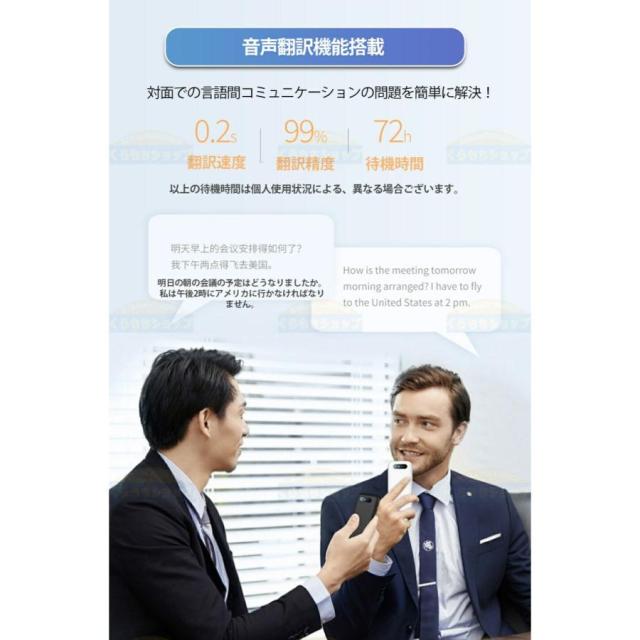 該当翻訳機は世界の70か所に翻訳サーバーを配置。世界のどこでも使える0.5翻訳の速度と安定性を提供します。(翻訳速度:最大0.5-3.0秒)