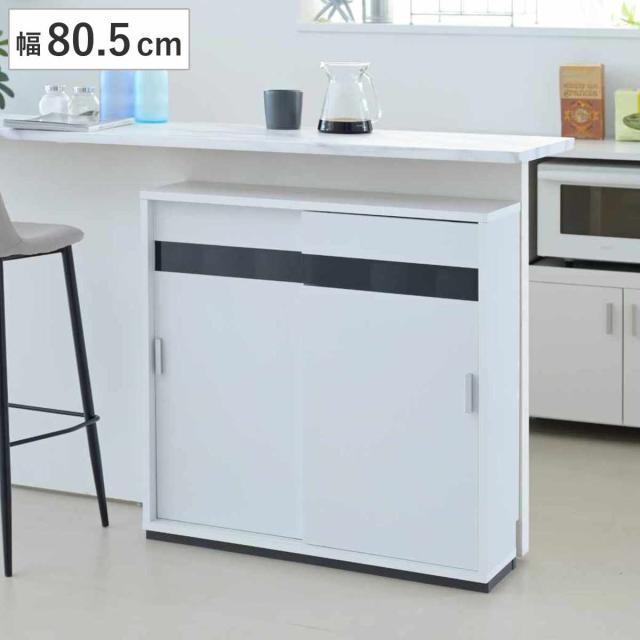カウンター下収納 幅80.5cm 可動棚6枚 引き戸 ( カウンター下 収納 可動棚 棚 ラック 窓下 食器棚 ディスプレイ リビング ホワイト 白 ブラックガラス )