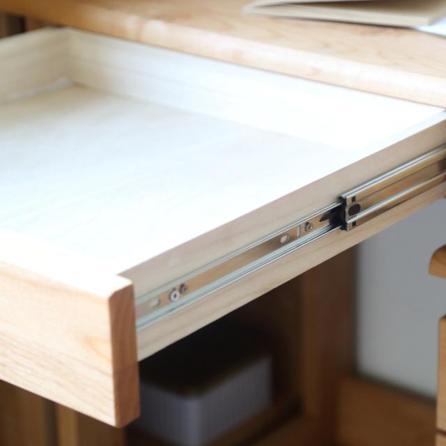 お子様から大人まで幅広く、永くご愛用いただけるアルダー無垢材を使用した、シンプルなデザインのデスクです。引出しはフルオープンで使い勝手が良く、別売りのワゴンやオープンラックなどと組み合わせれば様々なスタイルでお使いいただけます。
