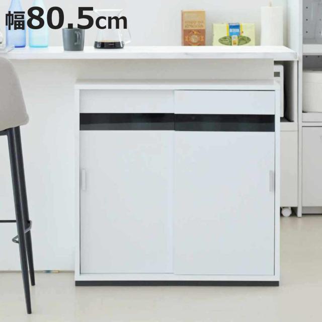 カウンター下収納 幅80.5cm 可動棚6枚 引き戸 ( カウンター下 収納 可動棚 棚 ラック 窓下 食器棚 ディスプレイ リビング ホワイト 白 ブラックガラス )