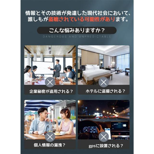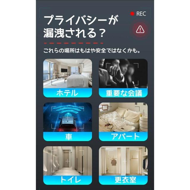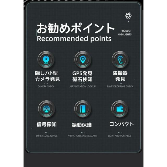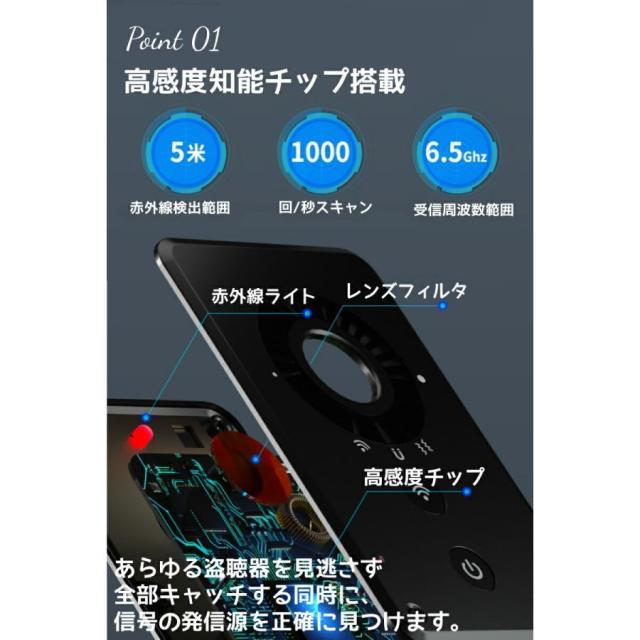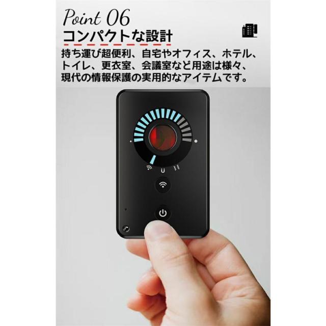 極めて薄いデザインで、高感度チップを採用しており、ホテル、会社、自宅、車内、トイレなど様々な場所に隠された盗撮用のワイヤレスカメラ/有線カメラ/盗聴器/GPS発信機/ボイスレコーダーなどの監視?盗聴?追跡デバイスを検出し、個人のプライバシーや企業秘密を保護します。