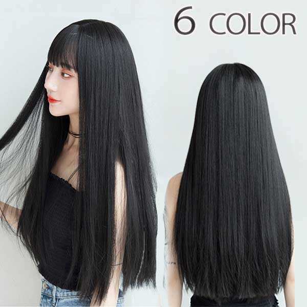 【レビュー投稿で+5%還元】ウィッグ フルウィッグ 長髪 ブラック ロング ストレート ロングウィッグ ぱっつん前髪 前髪あり かつら コスプレ 大人っぽく コスチューム 黒髪 仮装 文化祭 イベント dp006x5