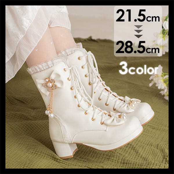 ロリータ ブーツ 厚底 甘ロリ ロリィタブーツ ゴスロリ 低いヒール おでこ靴 ロリィタ靴 編み上げ レディース メイド靴 可愛い 女の子 リボン付き 日常 文化祭 イベント 美脚 お茶会 通学 クロスストラップ コスプレ 小さいサイズ 大きいサイズ イベントei124z7z7m5
