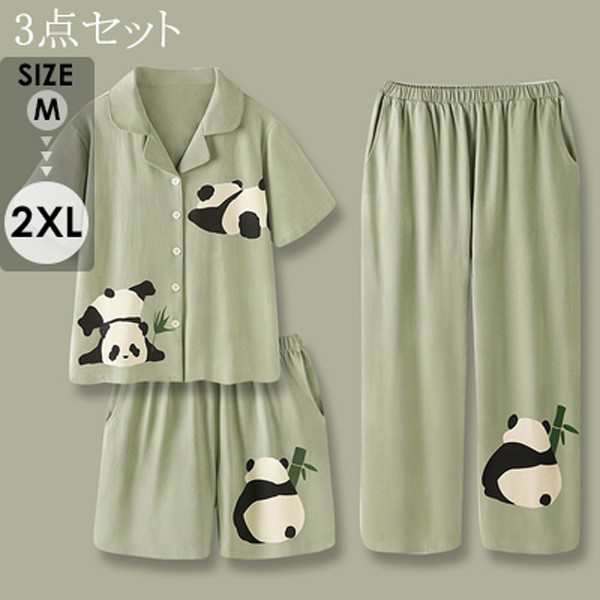【レビュー投稿で+5%還元】ルームウェア 大人可愛い パンダ パンダ柄 3点セット ルームウエア 夏 寝間着 ロングパンツ パジャマ ナイトウェア 上下セット セットアップ 寝巻 コットン リラックスウェア プレゼント ギフト パンツ M L 2L 3L