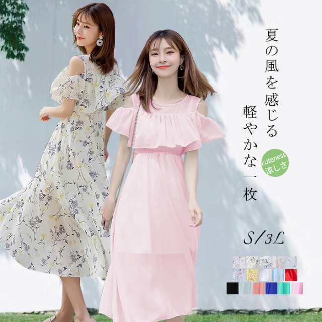 サマーワンピース 夏ワンピース 花柄 無地 オープンショルダー 大人可愛い ショルダーカット 肩見せ 体型カバー 春物 夏物 オフコーデ フリル ノースリーブ ワンピ パーティー フレア ハワイ 結婚式 リゾートワンピ リゾートワンピース サマードレス ロングワンピース Aライン ホワイト ブラック ピンク ネイビー レッド ビーチ dd126n1n1d7