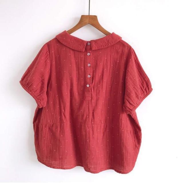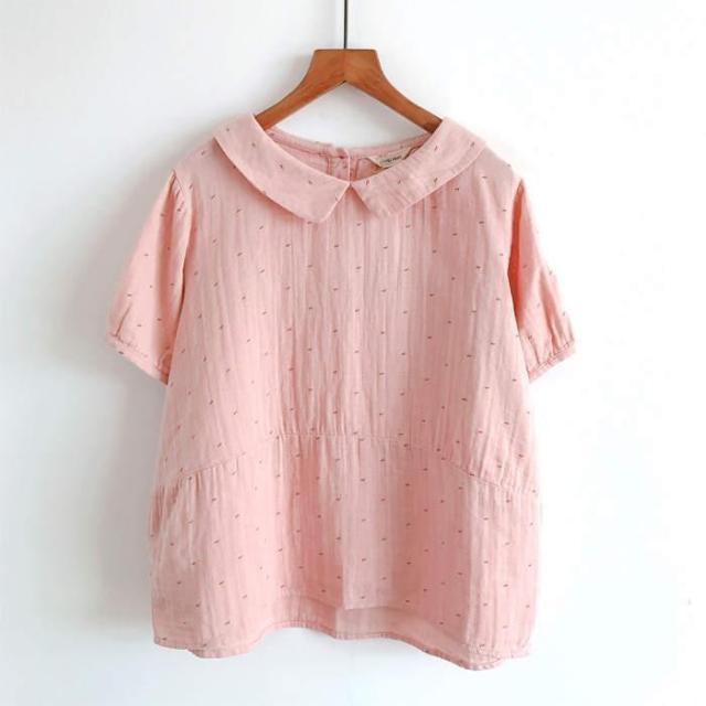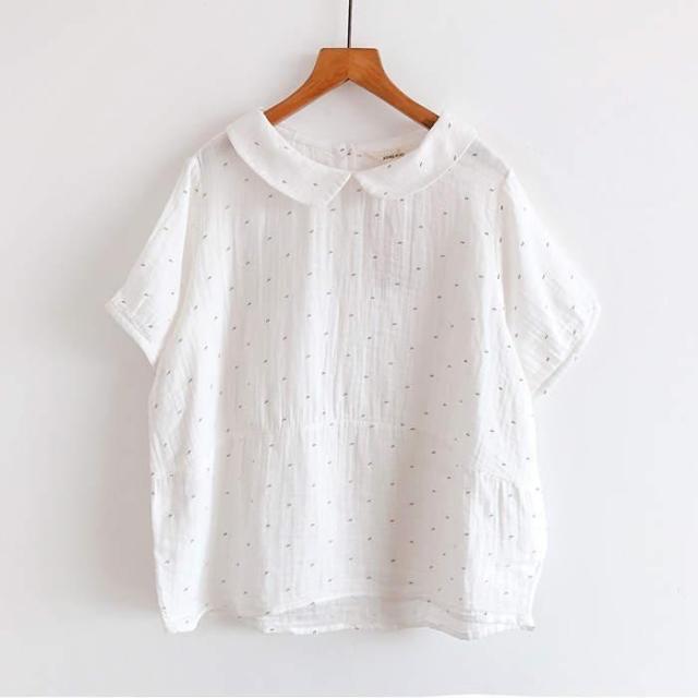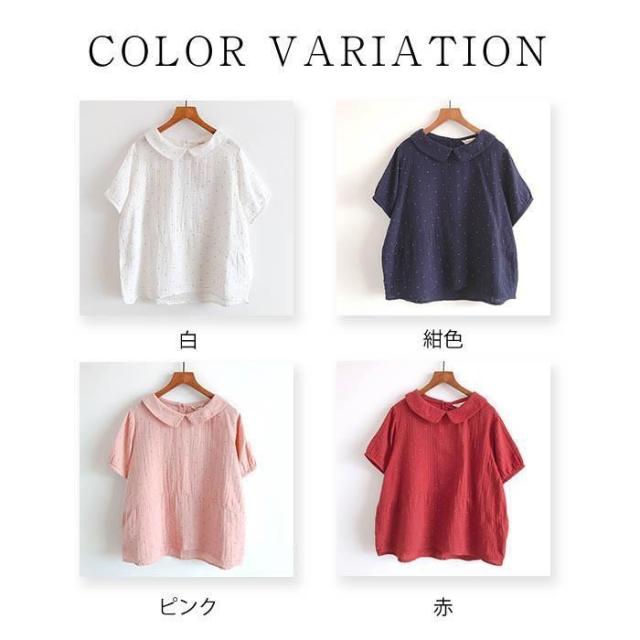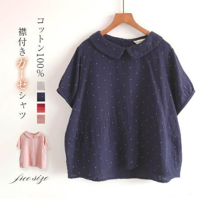森ガール シャツ ブラウス レディース 半袖 シャツブラウス プルオーバー トップス 襟付き 大人 可愛い カジュアル 夏