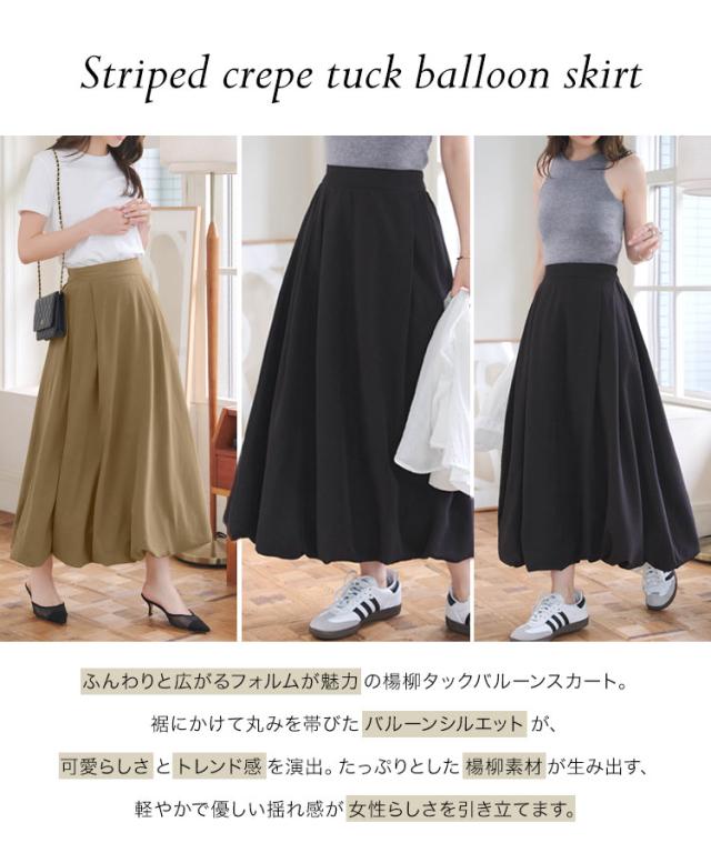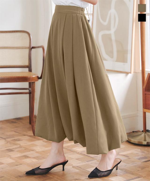 春新作 楊柳タックバルーンスカート M4258 入荷済 レディース 20代 30代 40代 ボトム スカート ロング丈 バルーン バックゴム タック 楊柳 バルーンスカート ロングスカート ウエストゴム タックスカート 無地 茶色 黒 カーキ ベージュ カーキ