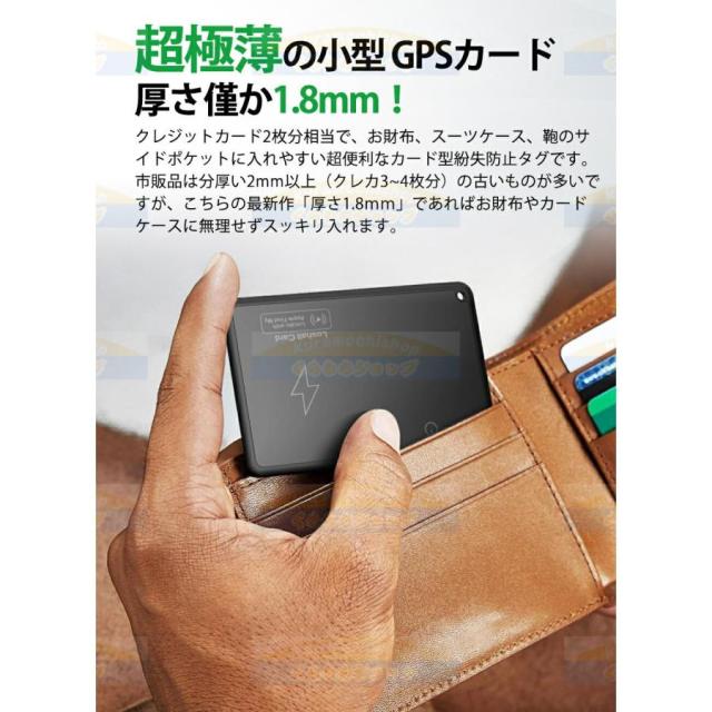 【超極薄の小型 gps カード】厚さ僅か1.8mm!クレジットカード2枚分相当で、お財布、スーツケース、鞄のサイドポケットに入れやすい超便利なカード型紛失防止タグです。市販品は分厚い2mm以上(クレカ3~4枚分)の古いものが多いですが、こちらの最新作「厚さ1.8mm」であればお財布やカードケースに無理せずスッキリ入れます。