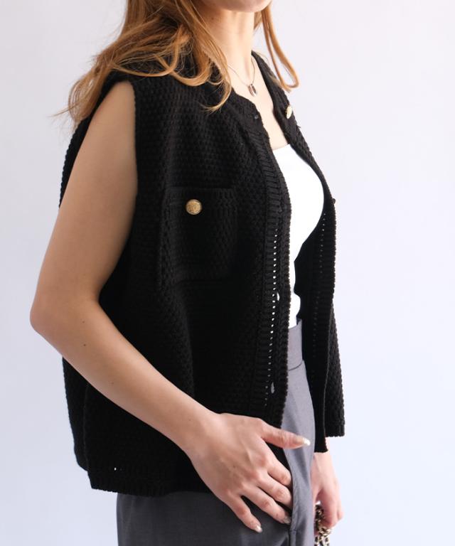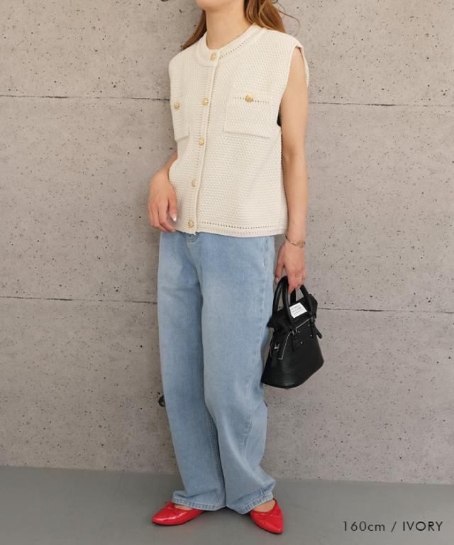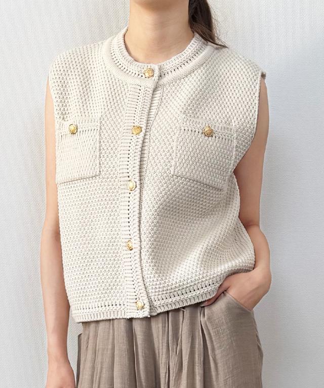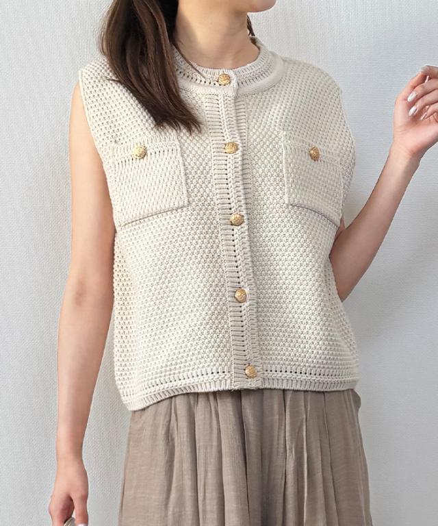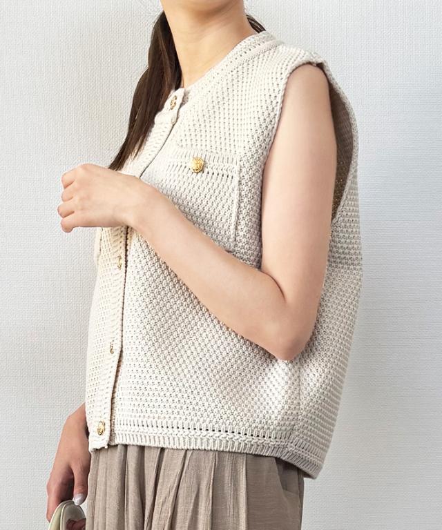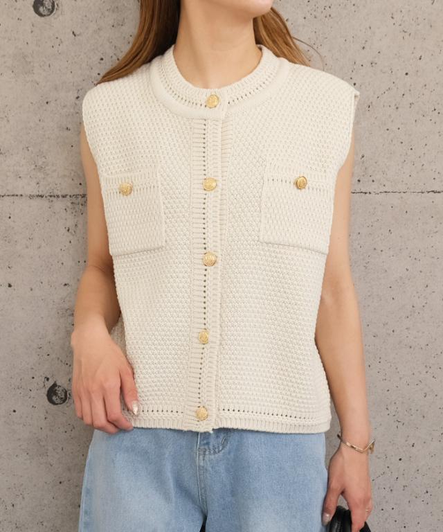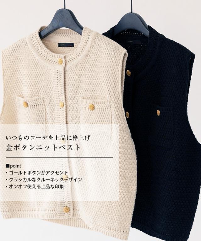 金ボタンニットベスト 春 秋 冬 レディース アクアガレージ aquagarage