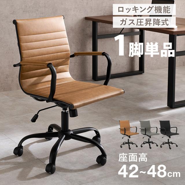 ワークチェア オフィスチェア 1脚単品 LOCU ライトブラウン色・ダークグレー色・ブラック色 合成皮革レザー張り かため アームチェア キャスター オフィス用にも 学習椅子 昇降式 デスクチェア