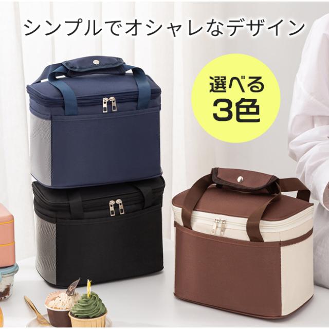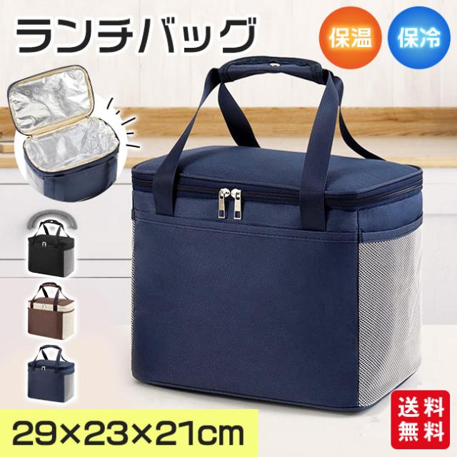 ランチバッグ トートバッグ スクエア型 保温 保冷バッグ お弁当バッグ 大きめ 多収納 ファスナー開閉 表地防水ナイロン お買い物