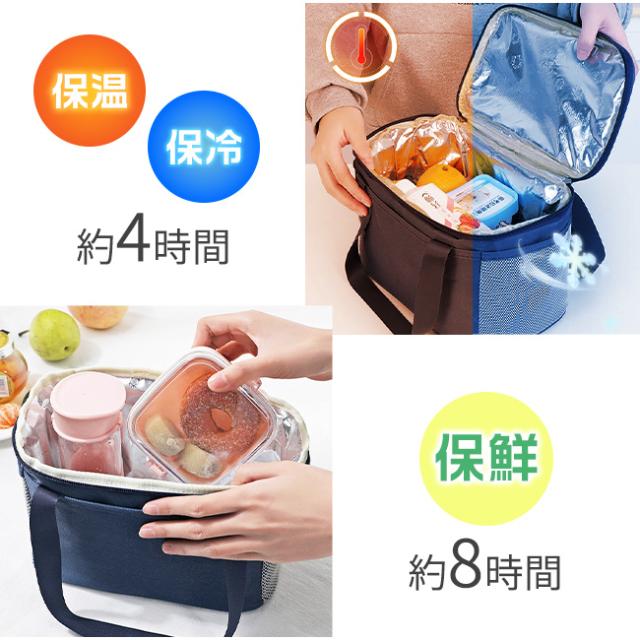 ランチバッグ トートバッグ スクエア型 保温バッグ 保冷バッグ お弁当バッグ 大きめ 多収納 ファスナー開閉 表地防水ナイロン 内側アルミ素材 保温 保冷 防水 防湿 サイドにメッシュポケット お弁当入れ お買い物 ピクニック 旅行