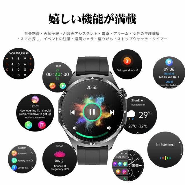 スマートウォッチ 日本製センサー 心電図PGG+ECG 血中酸素 通話機能 血液成分分析 1.43インチ 丸形 血圧測定 IP68防水 高精度心拍数 呼吸率 体温 睡眠 父の日 ギフト 敬老の日