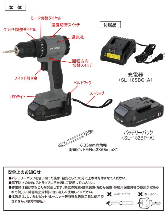 EARTH MAN SHARE LINK 18V充電式ブラシレス振動ドリル SL-BDR40-AS 送料無料 家庭用 電動工具 作業工具 DIY 電気ドリル ドリル 18V ねじ締め 穴あけ 充電式 アースマン EARTH MAN 高儀