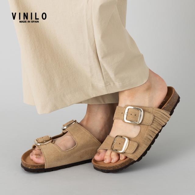 ヴィニーロ VINILO フリンジ2ストラップサンダル レディース スエード ダブルベルト 牛革 カジュアル 洗練 リラックス 旅行 リゾート ゴールドバックル サンダル シューズ CH-14740-SE
