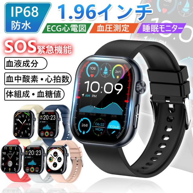 【クーポン期間限定配布中】スマートウォッチ ECG心電図 血糖値 医療レベル測定 血中酸素 血液成分 体組成 血圧測定 1.96インチ大画面 通話機能付き 心拍数 睡眠管理 運動モード 尿酸 血中脂質 父の日 ギフト 敬老の日