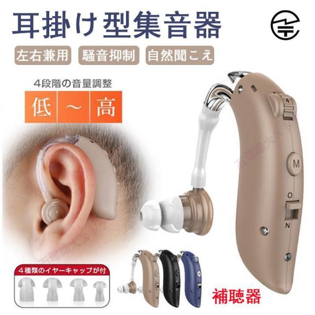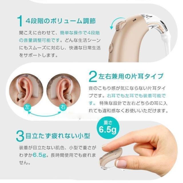 補聴器 耳掛け 集音器 補聴器本体 小型 充電式 耳かけ 軽量 右耳 左耳 難聴 聞こえ 4段音量 ハウリング抑制 デジタル補聴器 騒音抑制 両親 高齢者 母の日
