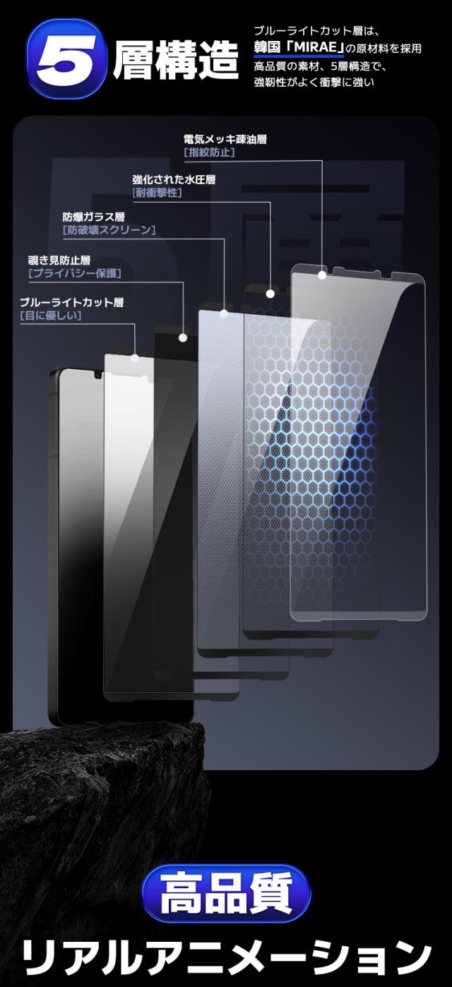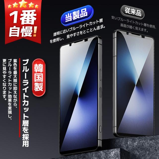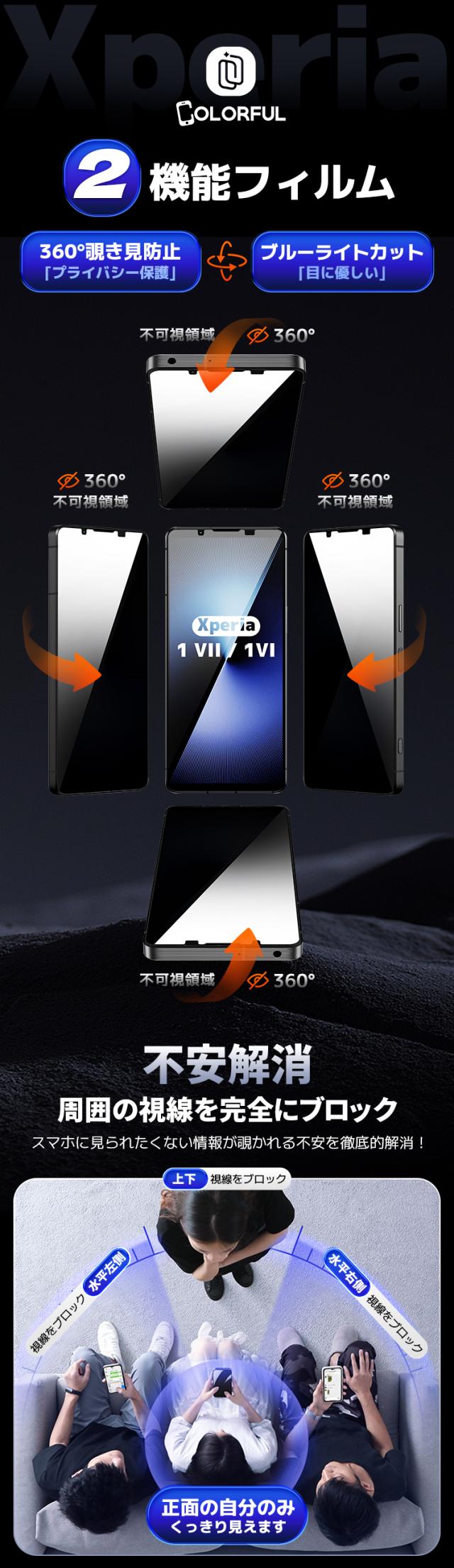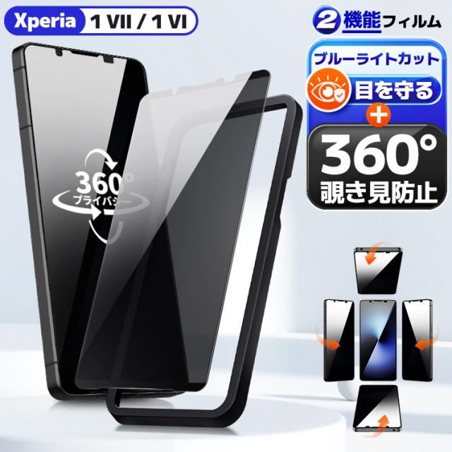 【4方向覗き見防止 + ブルーライトカット 】 Xperia1VII ガラスフィルム Xperia1VI フィルム エクスペリア1 マーク7 マーク6 保護フィルム so-51F So-51e 液晶フィルム SOG13 保護シート 目に優しい 日本製硝子 ガイド枠 簡単貼付 覗き見防止 保護フィルム 360 のぞきみ防止