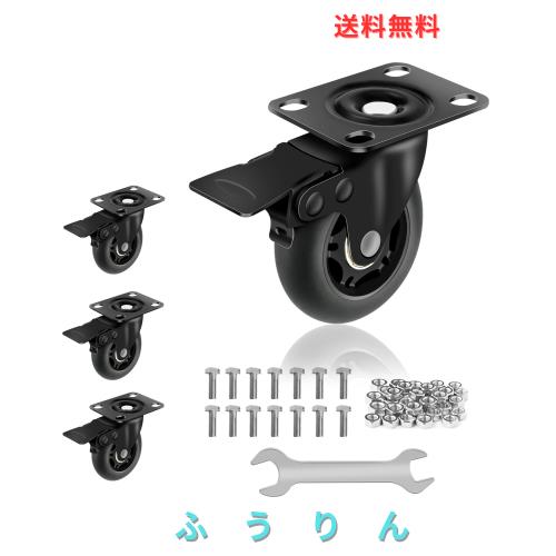 キャスター 車輪 ホイール径75mm 耐荷重500KG 重量キャスター 4個セット キャスター ストッパー付き 静音転がり 床保護設計 360度自在回