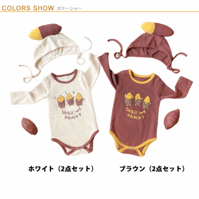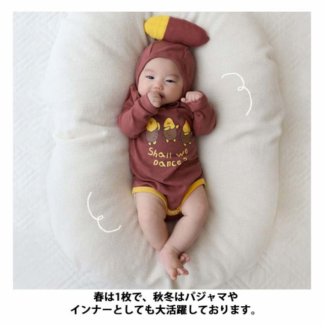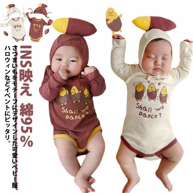| 面白いベビーロンパース。 さつまいもをモチーフにデザインした可愛いベビー服、ハロウィンなどイベントにピッタリ。 寝相アートなど記念写真撮影にも最適。 柔らかくソフトな肌触りがとっても着心地がよい。 生地は厚すぎず薄すぎずでオールシーズン活躍できます。春は1枚で、秋冬はパジャマやインナーとしても大活躍しております。 | |
