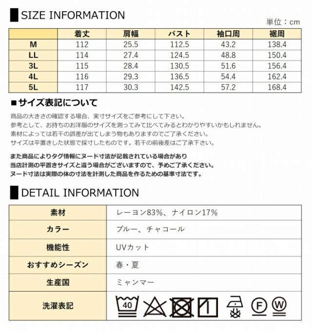 3L:着丈115 肩幅28.4 バスト130.5 袖口周51.6 裾周156.4