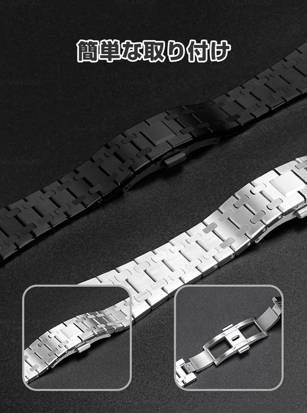| 特徴 | 【高級ステンレス】高品質なステンレススチール、低金属アレルギー性が高い素材を使用しており、汗などの腐食に強いです! 丁寧仕上げでとても美しく、高級感たっぶり!より落ち着いた大人の雰囲気を演出します。 【簡単装着】簡単な装着も脱着も可能です、専用に作られたファッション性の高い交換用バンド。 【 男女兼用 ・高級感溢れ】シンプルで高級感溢れるデザイン、きれいなカラーは老若男女問わず、通勤・旅行・日常生活の様々なシーンに対応します。お友達や家族にもギフトとしておすすめます。 【商品品質】 商品の管理・品質については万全を期しておりますが、万一ご注文と異なる商品・不良品が届いた場合は 商品到着後7日以内にお問い合わせフォームにてお名前・受注番号などをご記入の上、ご連絡頂いた場合のみ対応となります。 | |||||