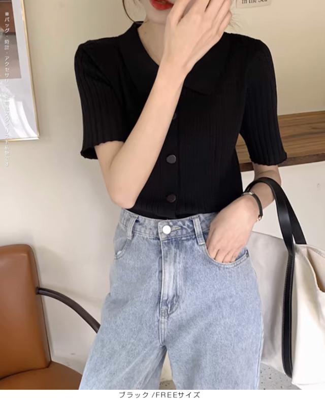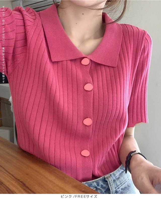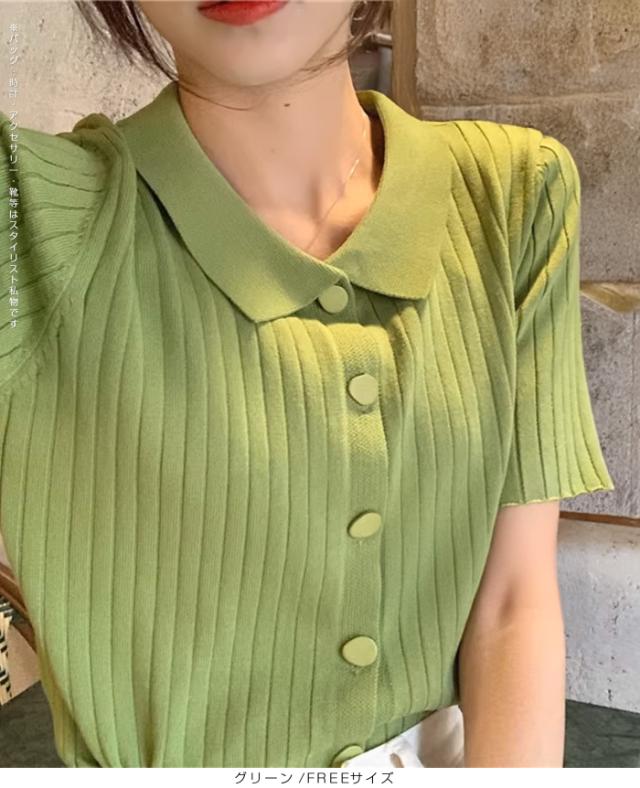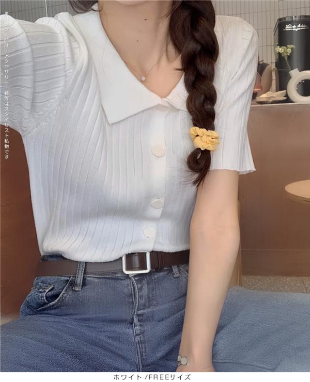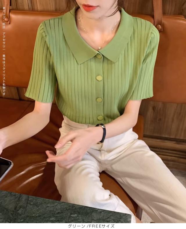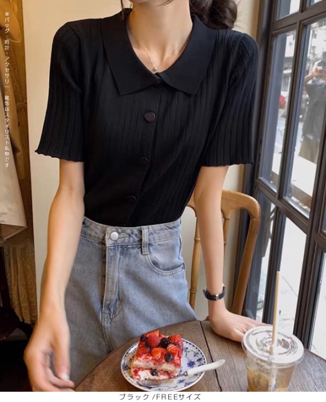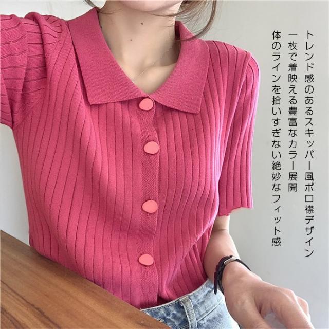 40%OFFクーポン配布中!トップススキッパー襟リブニットトップス レディース 半袖 カラーニット フレンチスリーブ風 夏服 体型カバー きれいめ 大人カジュアル 無地【スキッパー襟リブニットトップス】 ダークエンジェル 秋新作 trend_nit