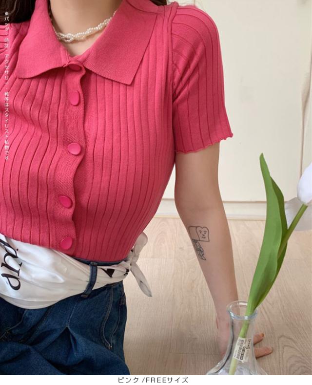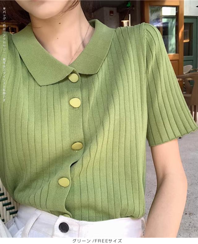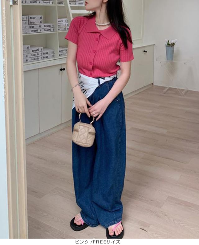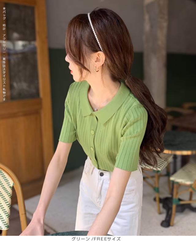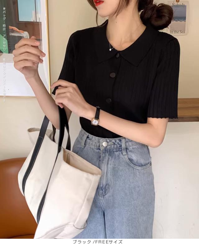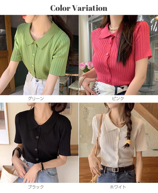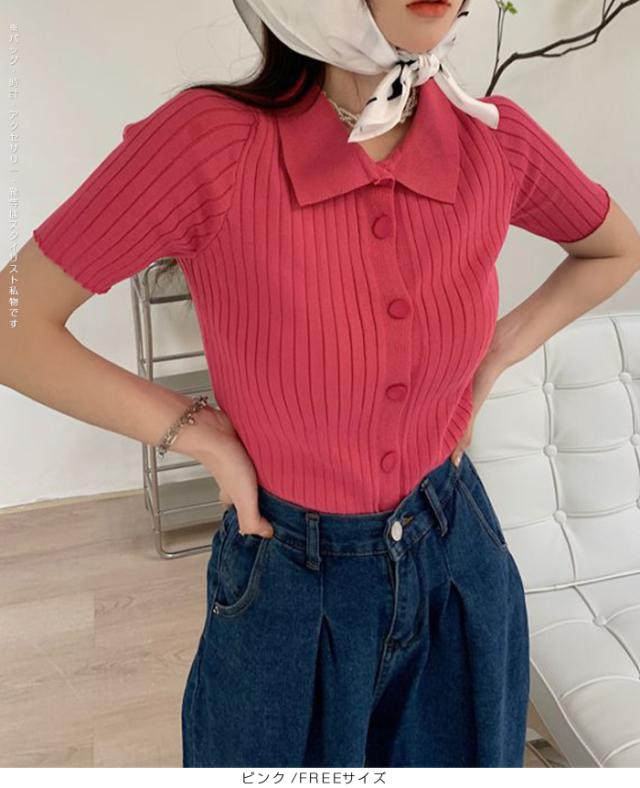 40%OFFクーポン配布中!トップススキッパー襟リブニットトップス レディース 半袖 カラーニット フレンチスリーブ風 夏服 体型カバー きれいめ 大人カジュアル 無地【スキッパー襟リブニットトップス】 ダークエンジェル 秋新作 trend_nit
