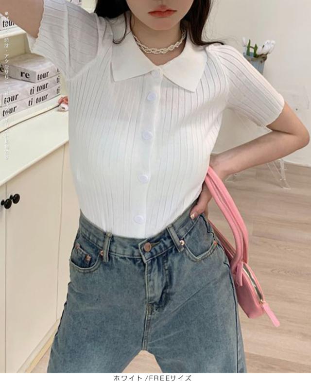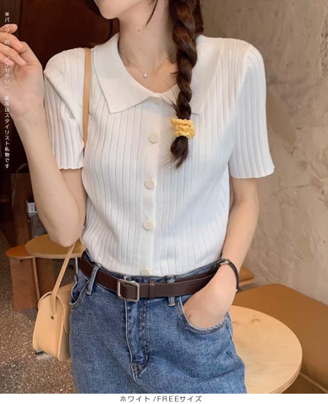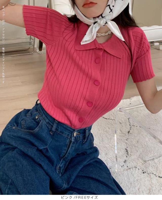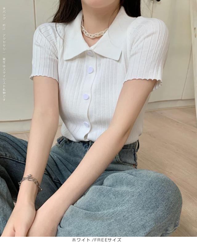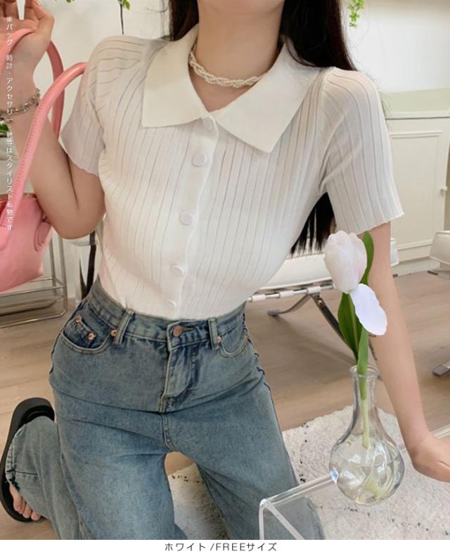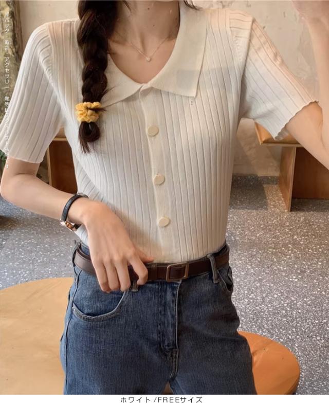 【スキッパー襟リブニットトップス】